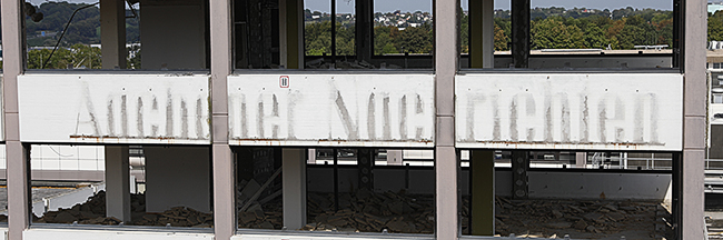 Das Ende nach knapp 50 Jahren: 1975 begonnen, 1979 bezogen - jetzt wird das alte Gebäude des Zeitungsverlages Aachen ("Aachener Zeitung" / "Aachener Nachrichten") abgerissen.